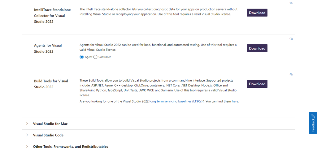 Download the “Build Tools for Visual Studio 2022” IN Access to https://visualstudio.microsoft.com/downloads/, And click the Download button. OUT “vs_Buildtools.exe” is downloaded.